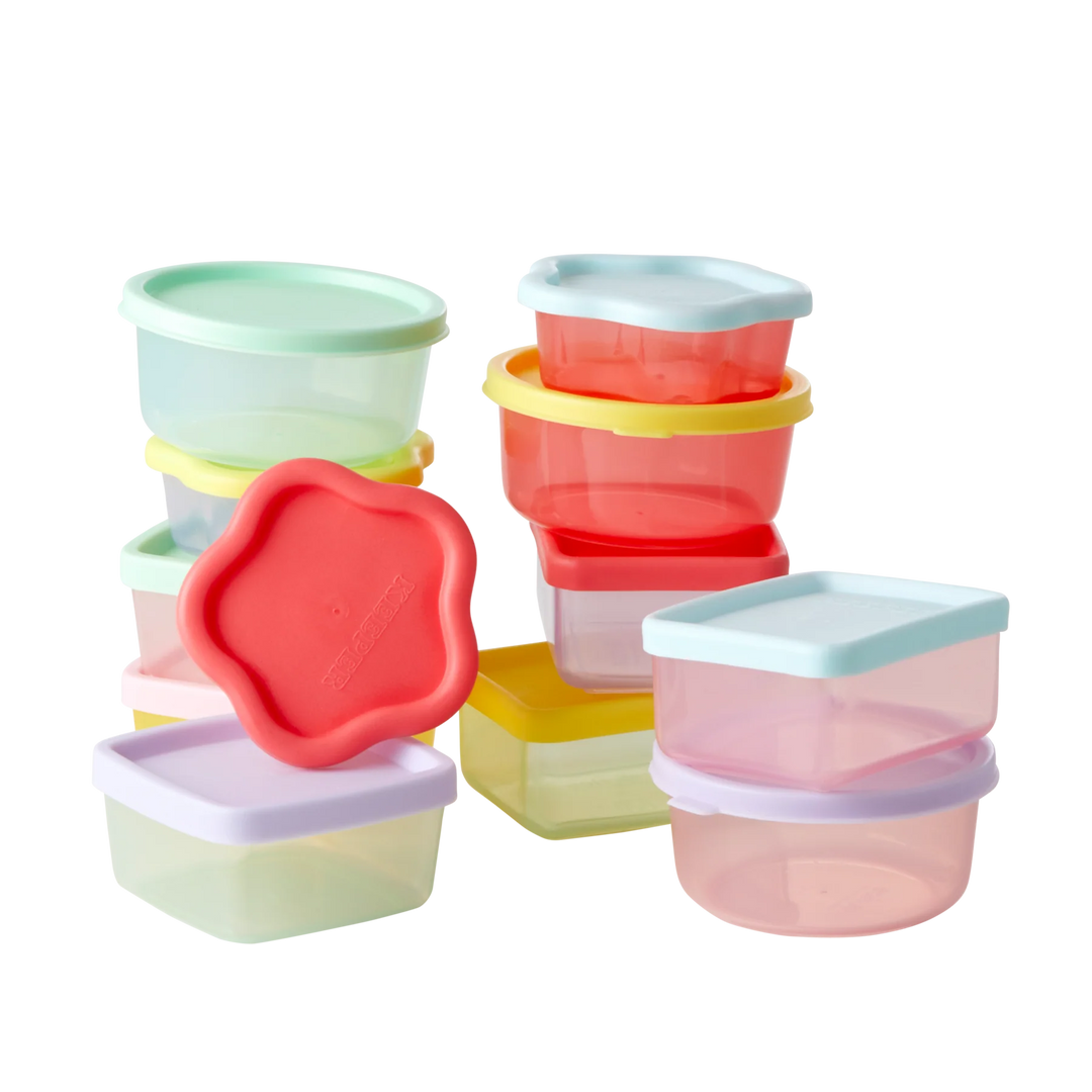 Helt og aldeles uundværlige bøtter til nødder, oliven, lidt dressing, en lille snack... eller hvad end du har behov for. De kommer i et net med 12 skønne små bøtter i assorterede farver og former. Super praktiske til både din og ungernes madpakker - og så passer de bare så fint sammen med alle vores andre opbevaringsprodukter.