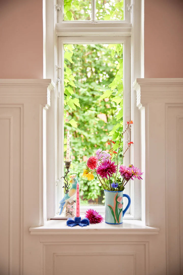 Super sjov og fantastisk lysestage formet som en eksotisk fugl. Den er lavet af keramik og er perfekt til både en funky borddækning og hygge i stuen!