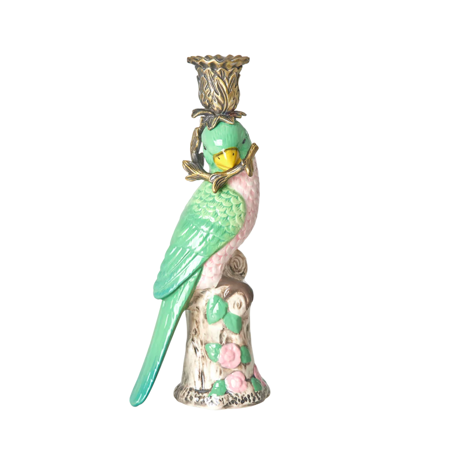 Super sjov og funky lysestage formet som en smuk og eksotisk grøn fugl. Den er lavet af keramik, og er perfekt til både en funky borddækning og hygge i stuen!