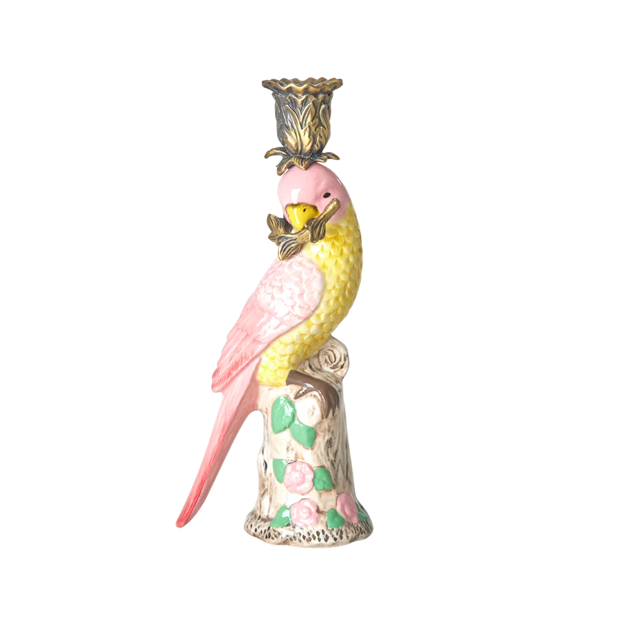 Super fun and funky candle holder shaped as a pink bird. It is made from ceramic and is perfect for both a splash of coziness in the living room and a funky table setting!