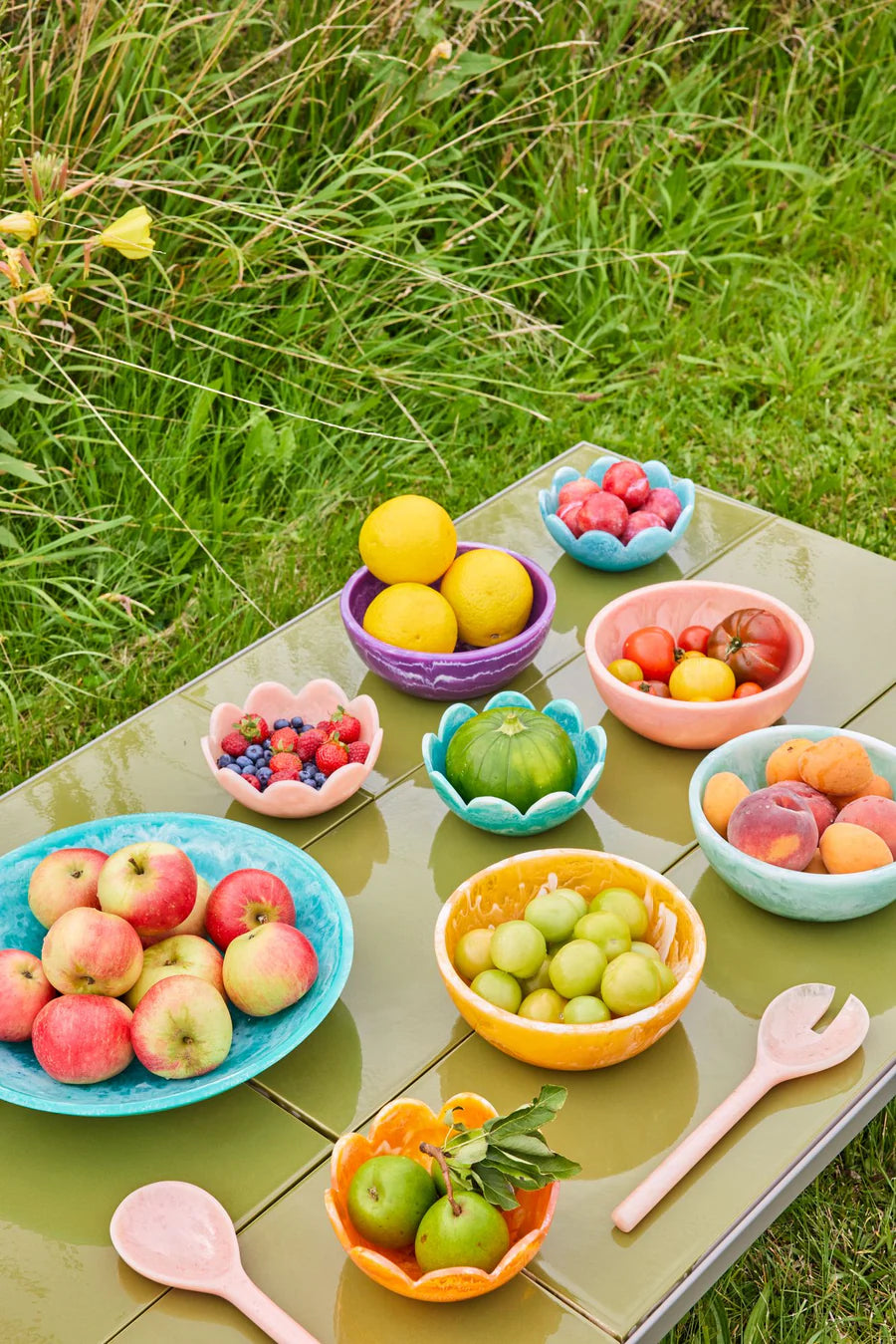 Skøn, stor skål i gul resin med et fint hvidt mønster. Det hvide mønster er håndlavet, så du finder aldrig to fuldstændig identiske skåle… er det ikke bare charmende? Du kan bruge den til hvad som helst – salat, popcorn eller måske bare som opbevaring til dine yndlingsting.