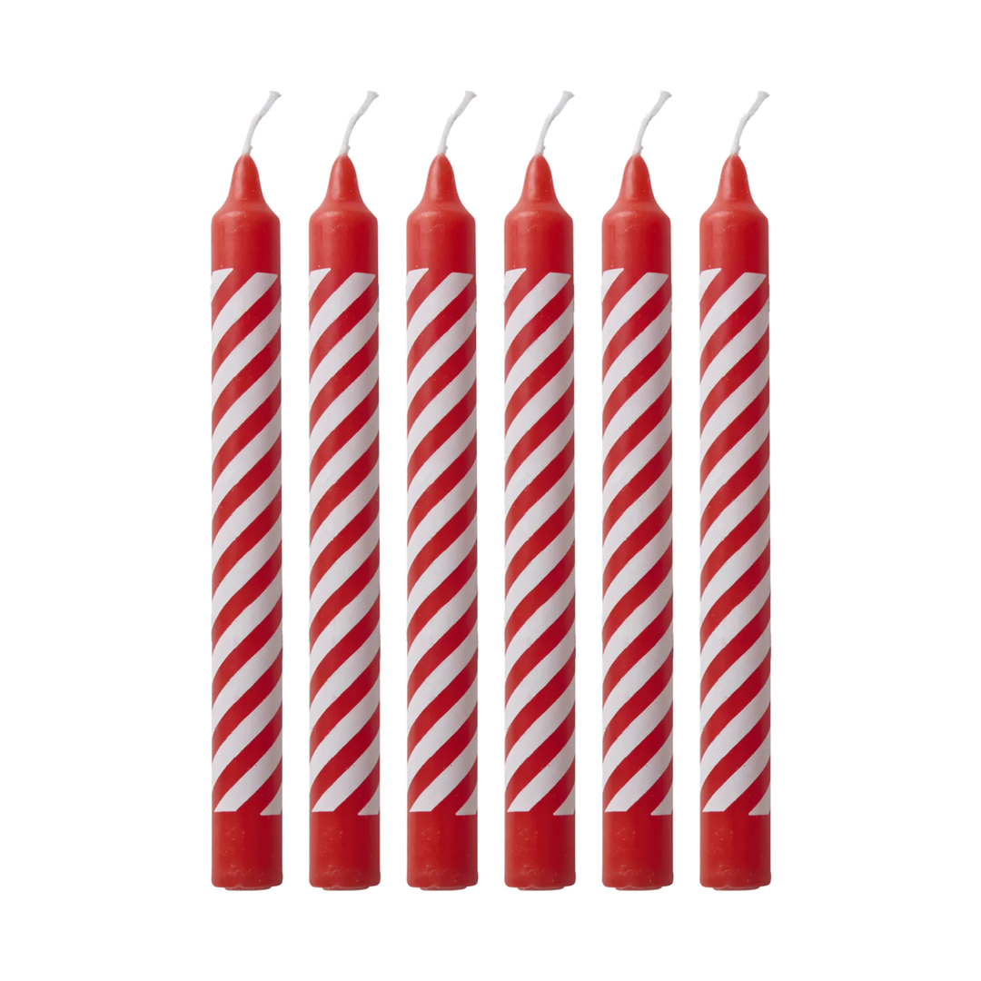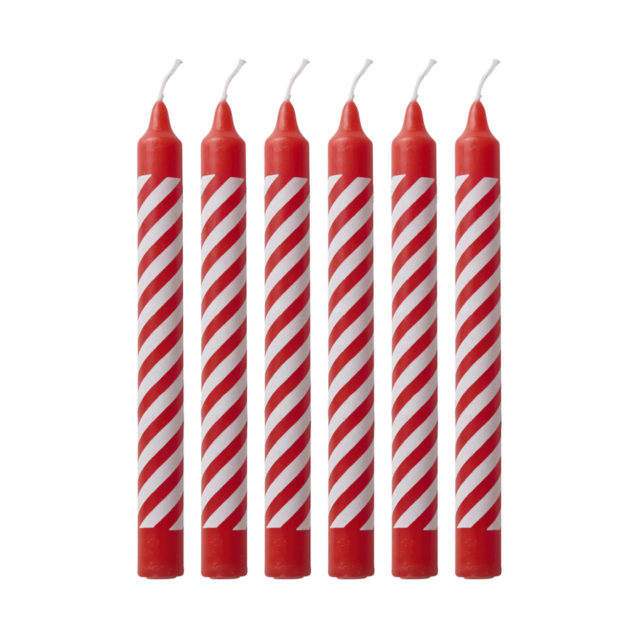 Juletræet med sin pynt… venter blot på prikken over i’et – vores super søde, røde juletræslys med hvide striber. De kommer i sæt af 12 lys og har en brændetid på 1 time – helt perfekt til de små søde julestunder.