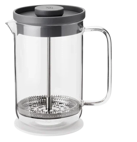 BREW-IT consists of a French press and a tea press tea maker, both made of glass and in an inviting, simple style that looks great in your kitchen. The included coasters are of a discreet size that precisely fits the bottom of the jug itself, ensuring that the dining table or coffee table is not damaged during use. When the items are not being used, the coasters can be kept on top of the lid. The French press makes 0.8 l. coffee.