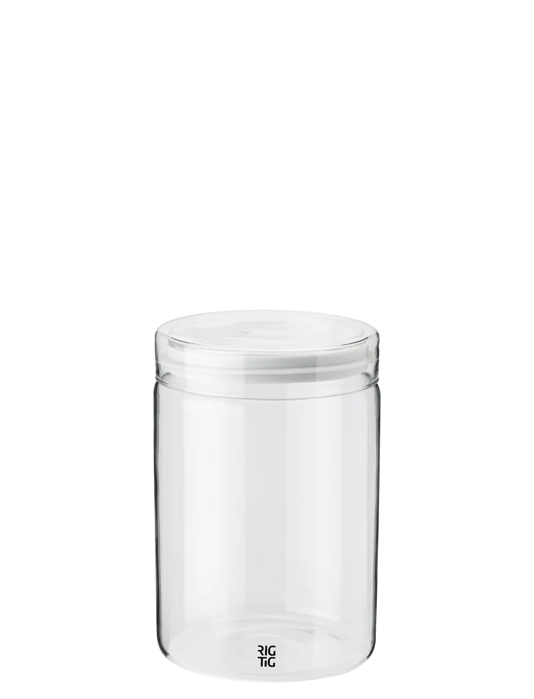 STORE-IT storage jars are designed to store dry foods such as oats, pasta and grains in the kitchen. The minimalist, cylindrical design does not take up much space in a drawer, cabinet or on the shelf, and the transparent glass makes it easy and quick to determine the contents. The silicone ring ensures airtight lid closure so that the contents do not emit odours or absorb flavours from other food products. The jars can also be used in the fridge to store jam, chutney or leftovers.