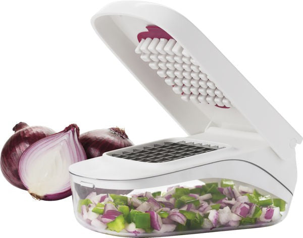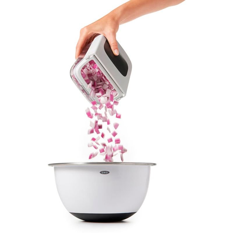 Hakkeren fra OXO hakker hurtigt og effektivt frugt og grønt i tern, så du nemt kan tilberede og nyde din daglige portion grønt.