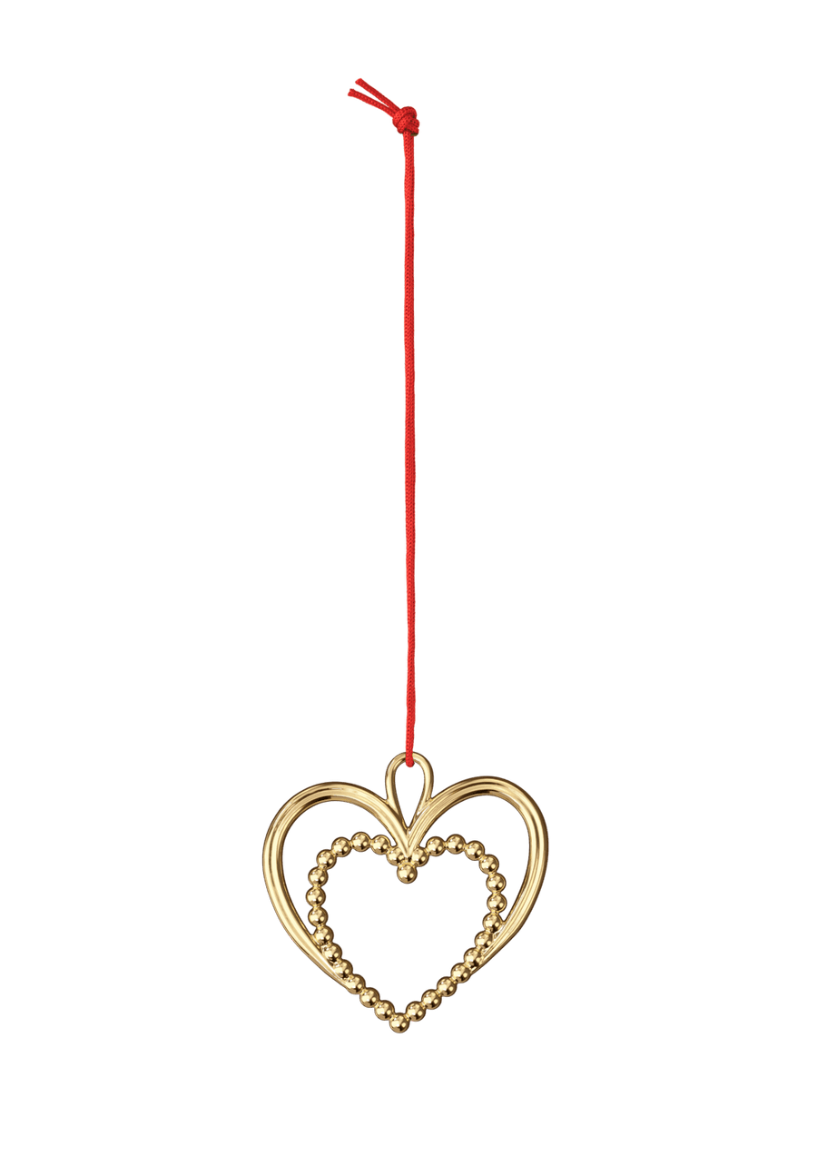 Klassisk julepynt med kunstnerisk kant. Rosendahls Karen Blixens Jul er for mange indbegrebet af den hyggelige og traditionelle jul – fuld af historie og julesymbolik, der får juleglæden til at holde helt indtil juleaften. Ole Kortzau lavede sin første Karen Blixen-julepynt tilbage i 2007. Og hvert år kommer der nye ophæng til i den særlige håndlavede kvalitet skabt med omhyggelighed og øje for detaljen i en sådan grad, at hvert enkelt ophæng fremstår som et lille kunstværk i sig selv, belagt med ægte sølv og guld. 2025-kollektionen indeholder blandt andet dette forgyldte perlehjerte, der yndigt og svævende tilføjer den magi til december, der gør juletiden til noget helt særligt. Perlehjertet er inspireret af følelsen af at tage en ægte perlehalskæde frem til højtiden og fortolket som julepynt – en elegant og feminin hyldest til kærligheden og et ikonisk symbol på skønheden og det smukke og hjertelige samvær i juletiden. Ophænget måler 6,5 cm i højden og fungerer både alene og sammen med de andre små ophæng i serien – perfekt som både vinduespynt og på juletræet. Motiverne i Karen Blixens Jul er ofte en kærlighedserklæring til børnenes perspektiv på julen. Men selvom Ole Kortzaus julehistorier tager udgangspunkt i virkeligheden, så er de ikke virkeligheden. Derfor er der også altid lige puffet lidt til motiverne. De er altid lidt skæve, lidt underfundige. Ole Kortzau vil have os til stoppe op, tage en pause – og nyde de særlige øjeblikke og opdage alle de klassiske karakterer på en anden måde. Dette juleophæng leveres med en fin rød snor.