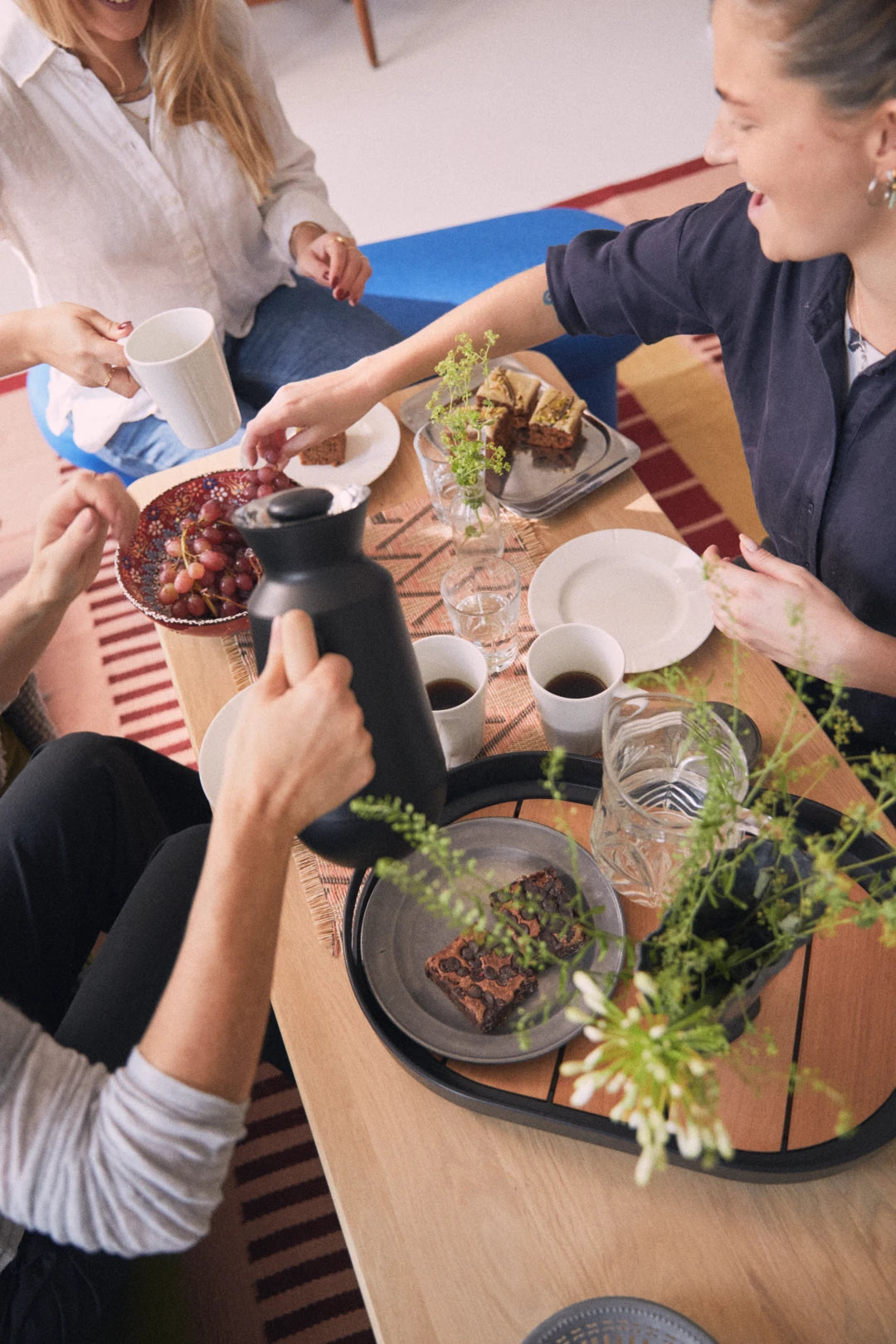 Bold industrial møder klassiske konturer. Med de nye Rosendahl-termokander DayBreak og Stay Warm får du to nydesignede arketyper – den lille runde dråbeform og den ikoniske høje slanke – skabt i et helt særligt materialemix med bløde former og sanselige overflader inspireret af naturen og tidens varme minimalisme. To nye favoritter til din helt egen stilfulde kaffepause og det store teselskab – til en tyst og tidlig morgen alene og til en glad aften med vennerne. Klar når solen stiger, et håb om at give dig den bedste start på dagen, nyde et aromatisk øjeblik af stilhed, før dagen for alvor tager fat. Og urokkelig loyal ved din side når snakken fortsætter og historierne bliver bedre og bedre og varer ved til langt ud på natten. Med DayBreak-termokanden i en klassisk og jordnær sort får du hverdagsmagi til alle livets øjeblikke i en flot og majestætisk form, der i en høj og slank silhuet hilser solen velkommen og inviterer til en god kop kaffe at starte dagen på. Den kan rumme en liter, men hvad du fylder i – og hvad du kalder den – bestemmer du helt selv. Det er din hverdag. Dine øjeblikke. Og selvom termokanden er fantastisk flot i sit udtryk, så går du selvfølgelig ikke på kompromis med Rosendahls velkendte funktionalitet og høje kvalitet, uanset hvor du kigger hen eller tager fat. Med et blankt indre i rustfrit stål og et gedigent greb udformet i bøg får du den perfekte kombination af æstetik og komfort. Den intuitive hældekant modvirker dryp og gør det let at skænke, uanset om du dækker op til frokost i køkkenet eller hælder varm te i en termokop på skovturen. Det er innovativt og intuitivt design til alle livets øjeblikke. Hverdagsmagien i morgenens første kop, den trofaste makker til dagens små breaks og den velfortjente aftenkaffe, når roen sænker sig. Din termokande er din ven for livet. Og Rosendahl er altid designet til det liv, der leves. Derfor kommer termokanden naturligvis også i langtidsholdbare materialer og et formsprog, der både tåler hverdagen og løfter festen. Med inspiration hentet i både oldtidens keramik og moderne industrielt design er Rosendahl-termokanderne skabt i en komposition, der taler til både øjet og hånden. Klassiske arketyper i moderne tekstur og tone, hvor taktile overflader og naturlige materialer forenes i et æstetisk udtryk, der er både funktionelt og inviterende. Termokanderne passer ind i enhver sammenhæng og i deres æstetiske enkelhed forstærker de alle de situationer, hvor vi sætter tempoet ned og mærker nærværet. Roen. Fællesskabet. Alle de øjeblikke, der bliver stående.