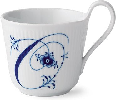 Fra en palmette gror en tynd stængel, som snor sig rundt og danner bogstavet ’O’ på dette håndmalede Alfabet Højhankskrus skabt med inspiration fra det musselmalede mønster. Porcelænskoppen rummer 33 cl af dine varme yndlingsdrikke. Inspirationen til Royal Copenhagens Alfabet Kollektion blev fundet i Royal Copenhagens store bagkatalog af håndmalede dekorationer og klassiske stel. Hver kop og tallerken i Alfabet Kollektionen er sirligt dekoreret i hånden, og hver enkelt steldel er en oplagt gaveidé med en helt personlig betydning for en du har kær.