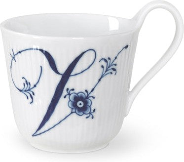 På Alfabetkruset er den klassiske Royal Copenhagen højhankskop dekoreret med et håndmalet ’V’ på den ene siden og blomsterdekorationer på den anden side. Alfabetkruset ’V’ er den perfekte gave til en, du holder af. De klassiske højhankskopper i Alfabetkollektionen er dekoreret med et håndmalet bogstav og blå palmetter, der gør hver en kop til en særlig og personlig gave.