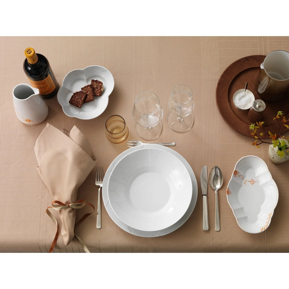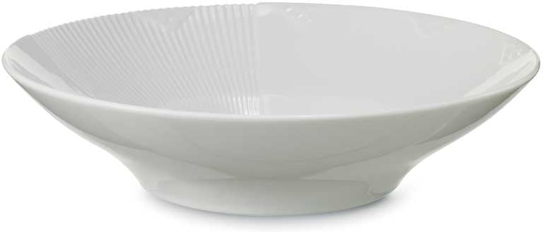 Størrelsen og de charmerende detaljer på denne Hvid Elements Dyb Tallerken på 25 cm gør den velegnet til alt fra enkle portionsanretninger til tilbehør til maden. Tallerkenen er dekoreret med fiskeskælsmønstre og et geometrisk felt af taktile rifler, der understreges af Flora Danicas ikoniske, takkede kant. Den hvide skål er let at sætte sammen med steldele fra andre Royal Copenhagen stel for et helt personligt udtryk. I designet af Hvid Elements har Louise Campell skabt en charmerende og overraskende kombination af skattede designelementer fra Royal Copenhagens mest klassiske stel. I en ny fortolkning af traditioner er stellet udsmykket med riflerne fra Musselmalet Riflet, blondekanten fra Musselmalet Halvblonde og den takkede kant fra det ikoniske Flora Danica. Den overraskende brug af de klassiske elementer på det hvide porcelæn gør hver enkelt steldel helt unik.