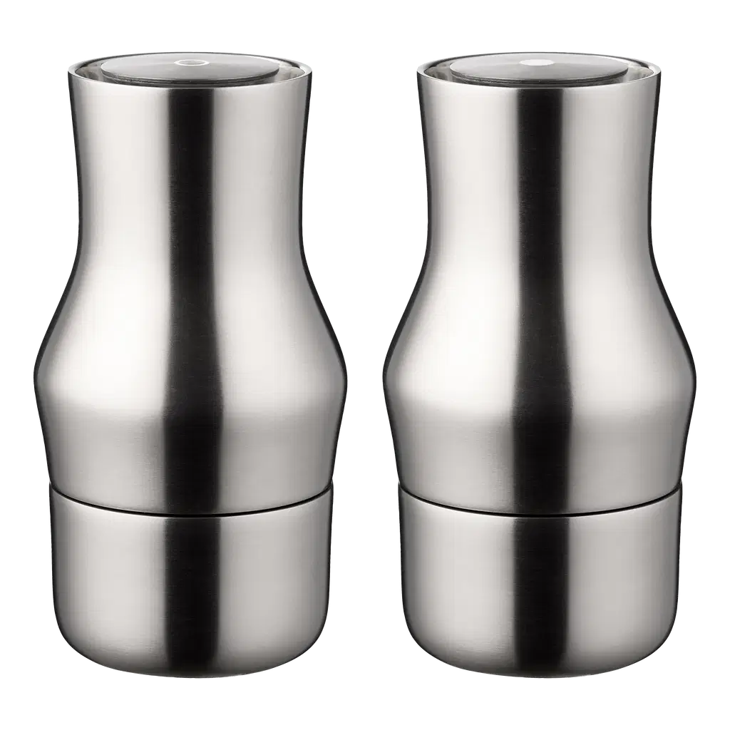 Den smukke, minimalistiske kværn med satinfinish i mat rustfrit stål bidrager til en elegant sammenhæng i borddækningen. Den keramiske CrushGrind® mekanisme er placeret i kværnens top, og på den måde sikrer det gennemtænkte design, at der ikke drysser krydderier på bordet, når kværnen sættes ned. Placeringen af kværnemekanismen giver flere fordele: tyngdekraften fører naturligt krydderierne ind i kværnen og giver en mere ensartet formaling. Samtidig ligger kværnen godt i hånden, så du har et behageligt greb og bedre kontrol. Med fire indstillinger fra fin til grov er det også nemt at justere krydringen efter forskellige præferencer. Den keramiske kværnmekanisme klarer både salt, peber og tørrede krydderier og sørger for, at smagene virkelig kommer til deres ret. Designet er inspireret af naturen omkring den lille landsby Dorotea. Her har isen skabt et landskab af bjerge, dale og store, åbne områder, der tilsammen danner bløde, flydende former, som endeløst erstatter hinanden. Denne overgang overses ofte, men ikke desto mindre ligger den eventyrlige og overraskende del af designet netop her. Med sine minimalistiske og organiske former kombinerer Dorotea-kollektionen tradition og håndværk med design på internationalt plan. Dorotea-kværnene er produceret af genanvendt rustfrit stål. Det betyder, at det rustfrie stål populært sagt har levet et tidligere liv. Rustfrit stål kan nemlig ud over at være enormt holdbart smeltes om og omdannes til nye produkter uden at miste sine egenskaber og kvaliteter. Rustfrit stål kan genanvendes i det uendelige og er således et materiale, der bliver ved med at give. Design: Monica Förster Dorotea modtog den internationale designpris German Design Award i 2025 i kategorien Excellent Product Design.