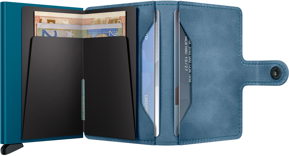 Den perfekte allround kortholder. Lille i størrelse og overraskende stor i lagerkapacitet, Miniwallet kombinerer det bedste fra begge verdener. Ydersiden rummer pengesedler, kvitteringer og kort, mens Cardprotector af aluminium giver dig mulighed for at skyde kort ud med en enkel bevægelse og beskytter dem mod bøjning, brud og uønsket trådløs kommunikation. 4 prægede eller 6 flade kort. 4 ekstra kort.