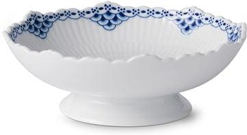 Denne iøjefaldende Prinsesse Skål på fod har en helt særlig kant, der med sin bølgende udskæring understreger formen på den håndmalede blonde. Skålens romantiske udtryk ophøjes af en enkel fod, der som resten af ydersiden står fin og ubemalet. Den klassiske skål passer ind i ethvert hjem, hvor den kan bruges som et serveringsfad til frugt og varme retter.