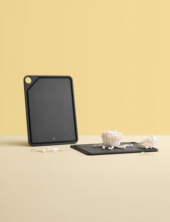 Stylish and practical cutting boards for the kitchen, made of durable fiber material by designer Søren Refsgaard. They are dishwasher-safe, can be refreshed with sandpaper and oil, and can withstand up to 170°C. Hygiene: Dishwasher-safe without warping or cracking, ideal for kitchen use. Available in three sizes—23.5 cm, 31 cm, and 39,8 cm—with rounded corners and hanging holes for convenience. The cutting boards from CUT-IT combine design and functionality in a harmonious way.