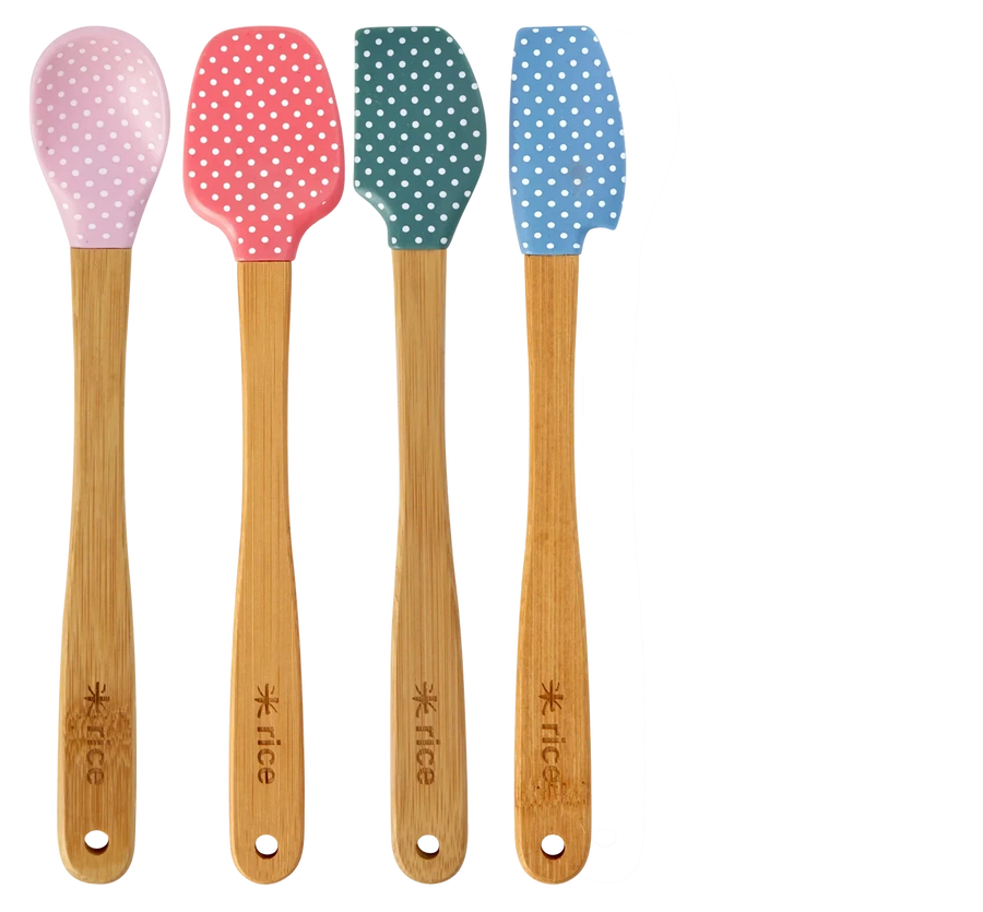 Disse 4 små silikoneskrabere og -skeer vil uden tvivl skabe hverdagsmagi i ethvert køkken! Deres fantastiske farver og glade prikker gør dem helt uimodståelige. De kommer med et bambushåndtag og tonsvis af gode vibes.