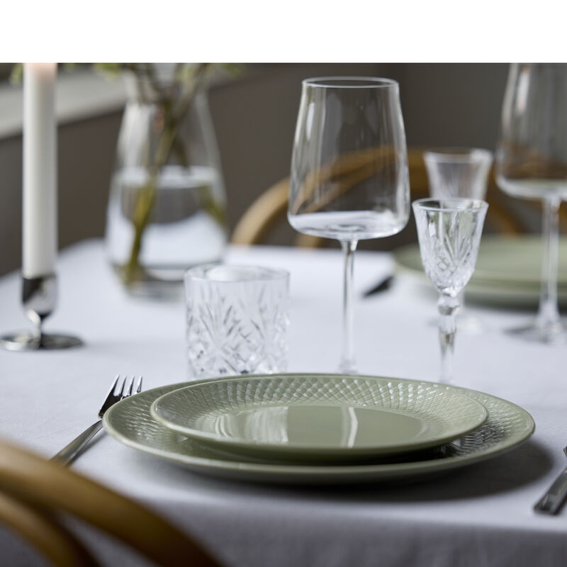 Glæd dine gæster med en dejlig snaps i et elegant snapseglas, som fremhæver indholdets nuancer, når omgivelsernes lys og skygger reflekteres i glassets smukke mønster. Snapseglasset egner sig også godt til en varm og fyldig portvin, smagfuld likør eller sødmefuld dessertvin. Tåler opvaskemaskine. 5 cl. 4 stk. Den smukke glasserie er fremstillet i Europa. Glassene produceres i elektriske ovne, hvortil der benyttes vedvarende energi fra solfangere, og overskudsvarmen fra produktionen genanvendes andre steder på fabrikken. Der anvendes råmaterialer af allerhøjeste kvalitet. Det er en produktion, der har taget højde for problemerne med klima og miljø ved at gøre tiltag for at sænke sin udledning.