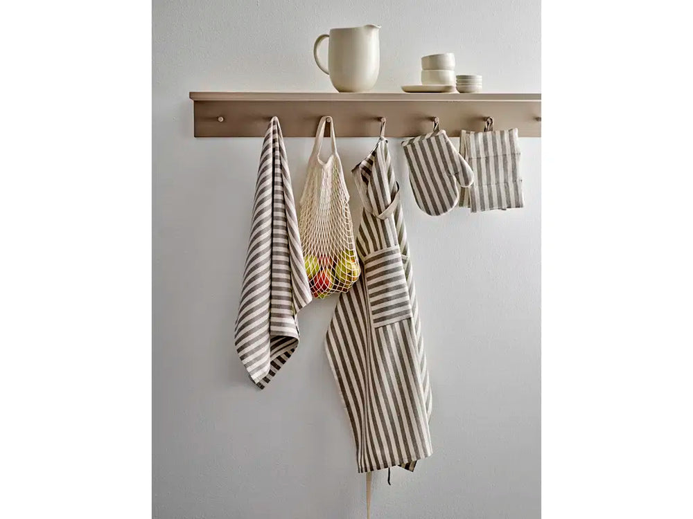 Klassisk og praktisk. Harmony-køkkenserien har et design, der aldrig går af mode, og fås i en ensfarvet udgave samt to stilfulde stribede mønstre. Serien er i genanvendt bomuld og passer ind i alle køkkener. Opgradér dit køkken med Harmony-serien, hvor tidløse produkter blandes med omtanke for miljøet. Harmony-viskestykket er ekstra stort med målene 60 x 90 cm og er forsynet med en ensfarvet strop, der gør det nemt at hænge op.