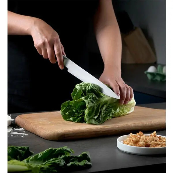 Hvis du leder efter en knivskarp klinge, der gør kort arbejde med at skære gennem kød og fisk, skuffer Stellar Poise Carving Knife ikke. Den slanke klinge er konisk slebet til præcisionsskæring, men er fleksibel nok til at gå rundt om knogler og brusk. Håndtaget er designet til at blive brugt i begge hænder for ekstra komfort.