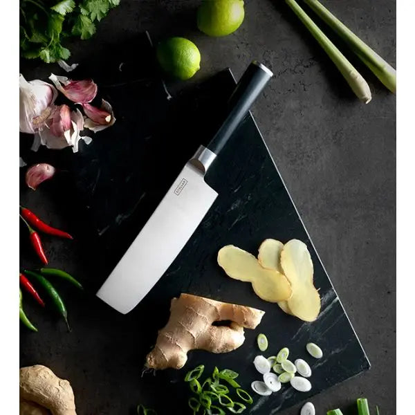Stellar Poise Chopper Knife gør hurtigt arbejde med at finhakke ingredienser som urter, frugter og grøntsager. Det præcisionsslebne klinge i rustfrit stål giver dig fingerspidskontrol over størrelsen og formen af ​​hvert snit, mens håndtaget i japansk stil er velegnet til brug i venstre eller højre hånd for ultimativ komfort.