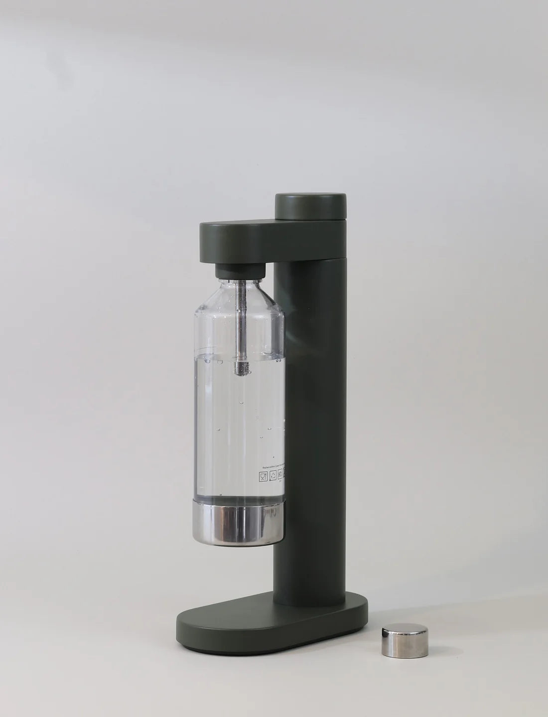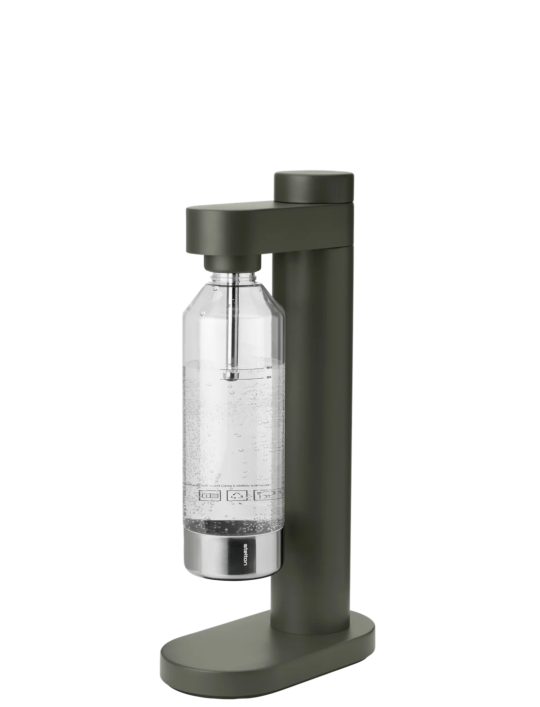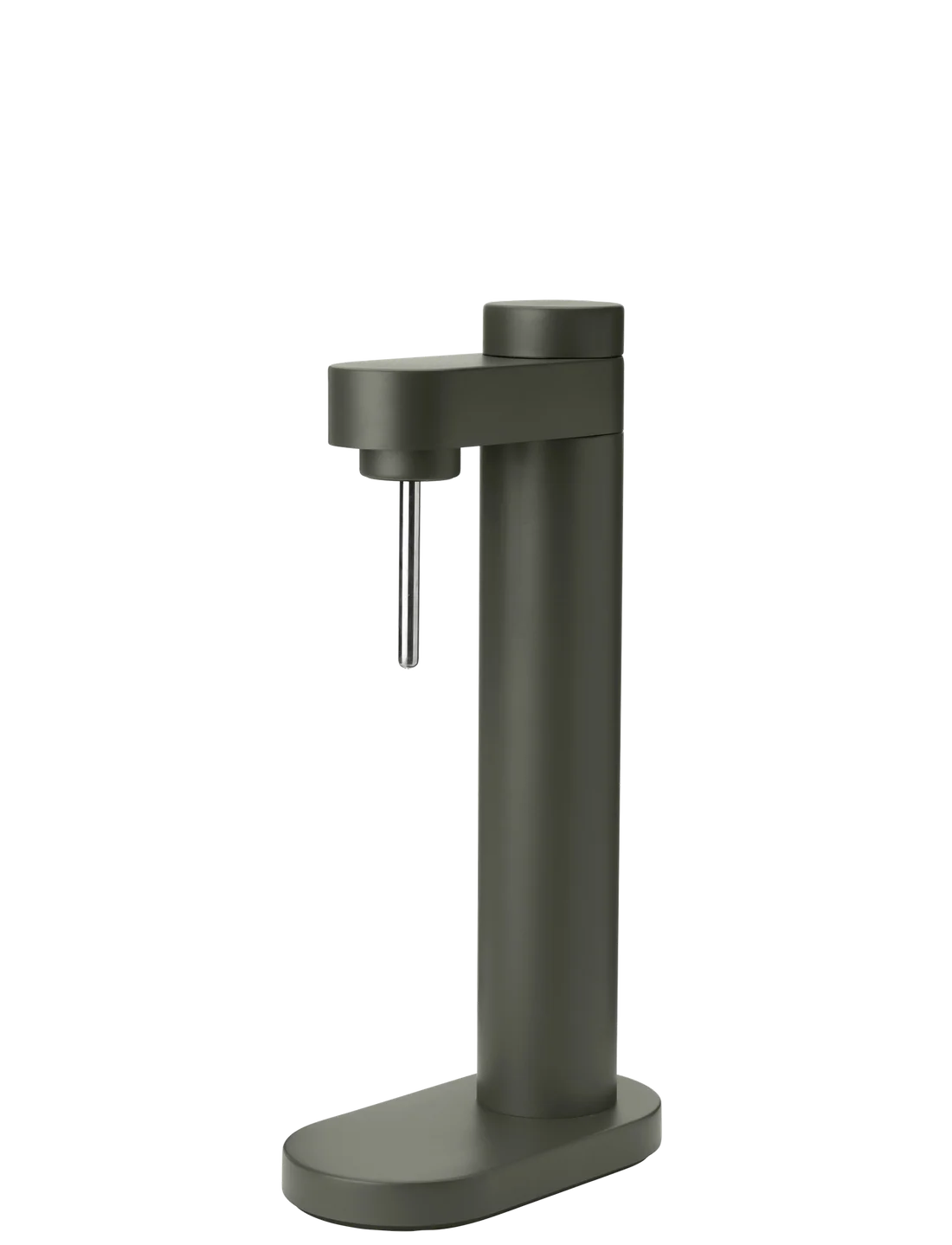 Med Brus kulsyremaskine sparer du miljøet for store mængder af unødigt plast ved at lave din egen danskvand eller sodavand i genanvendelige flasker. Designet af sodavandsmaskinen er så elegant, at du kan glæde dig over at have den stående fremme på køkkenbordet. Designeren bag, Søren Refsgaard er kendt for sit rene funktionelle design, hvor alt overflødigt er skåret væk. Det er Brus et særdeles godt eksempel på. Designet trækker på de cylindriske former, der er klassisk for Steltons design. Den cylindriske form ses først og fremmest i den ultraslanke beholder til kulsyrepatronen og går igen i kulsyreknappen, der intuitivt drejes med uret for at tilpasse mængden af kulsyre og drejes kontra, når flasken skal løsnes fra maskinen. Brus kulsyremaskine leveres med et styk Brus flaske.