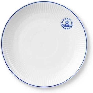 Med et minimalistisk og sofistikeret udtryk er Royal Copenhagens Blueline kollektion maritimt inspireret, og de tre bølgelinjer i forsidestemplet indkapsler Royal Copenhagens blå penselstrøg i et nyt udtryk. Kollektionen er skabt i 2021, og den blå linjes uendelige rejse langs kanten af Blueline er et slående bevis på nøjagtighed. Det iøjefaldende stempel afbryder riflernes rytme og byder dermed på en smuk variation af det velkendte. Med en uendelig blå linje forvandles en kompleks teknik til det diskrete udtryk, der giver den nye kollektion sin underspillede charme og nedtonede ro.