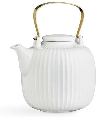 Den hvide tekande fra Hammershøi-serien er formet i porcelæn og indbyder til hjemlig, luksuriøs hygge og samvær om en velbrygget kop te. Tekanden har et elegant, moderne formsprog med en dekorativ messingbelagt hank og en praktisk indbygget si, der let skiller tebladene fra teen, hvis du brygger din te på traditionel vis. Hammershøi tekande har 2 års brudgaranti.