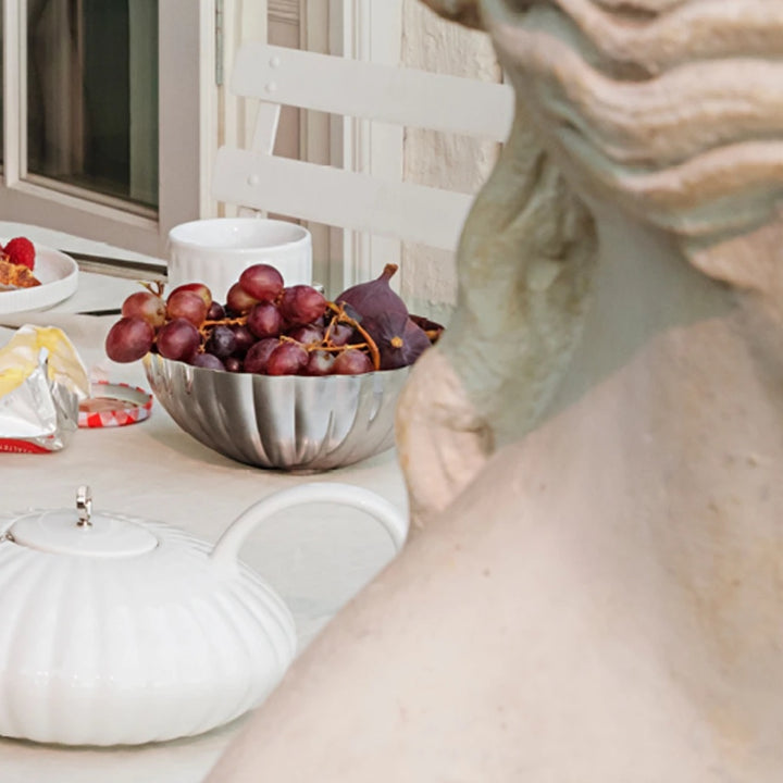 Denne tekande i porcelæn er inspireret af Sigvard Bernadottes designs og af Japans traditionsrige teceremonier. Tekanden har et elegant håndtag og et unikt udtryk, og den indeholder en si i rustfrit stål, så du nemt kan brygge din yndlingste. Sien hænger fast i en kæde, som ikke bliver varm under tebrygningen.