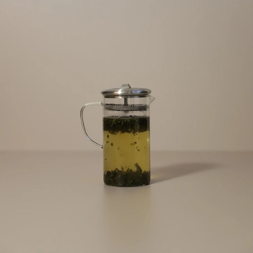 Fin tebrygger fra Teministeriet, som er lavet i varmeresistent glas med låg og filter i rustfrit stål. Det smarte filter er en fast del af låget og minder om princippet fra stempelkanden, dog bare endnu smartere!