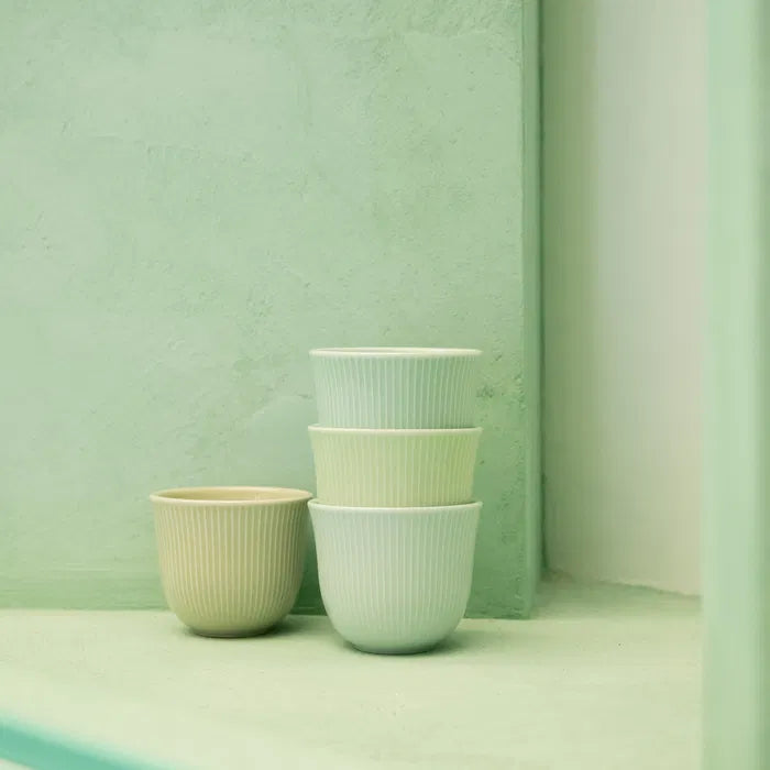 Inspired by the amazing color palette found on the Rainbow Housing Estate of Hong Kong cityscape, the new Loveramics Brewers Embossed Tasting Cups comes in 11 beautiful pastel colors that will compliment anyone’s interior be it in your own home or with the decor of your coffee shop. - Wider opening and rounded-base for latte art. - Come in 3 sizes: 80ml for Espresso or for your applied teabag and two larger sizes for coffee or tea one at 150ml and one at 250ml. - Stackable. - 11 colors for pairing with our colorfull tea packaging and to color your table. - The shape that is accentuated by the colorful translucent glaze that breaks on the delicate pinstripe embossment. - The flared opening of each cup expresses the aroma of your favourite coffee or tea. 80 ml: 6.5 x 6.5 x 5.5 cm 150 ml: 7.5 x 7.5 x 6.5 cm 250 ml: 9.0 x 9.0 x 7.5 cm