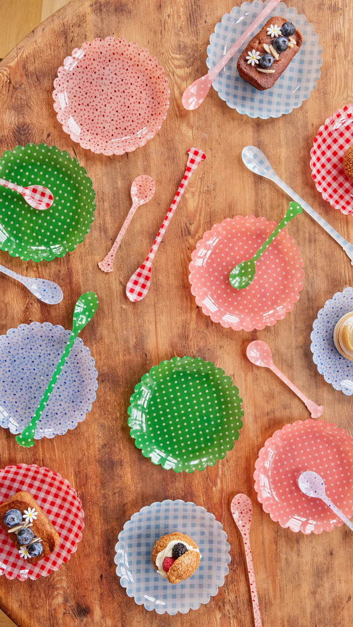 Tjek vores sjove og funky akryl-teskeer! Denne er med søde, røde tern og i en helt unik form. Perfekt til weekendens kagebord, til en dessert eller til en lækker dip. Vær opmærksom på, at produktet ikke er egnet til børn under 3 år.
