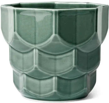 Formen er taget fra art deco glaslampeskærme og i kombination med den flotte grønne glasur, komplimenterer de enhver plante.