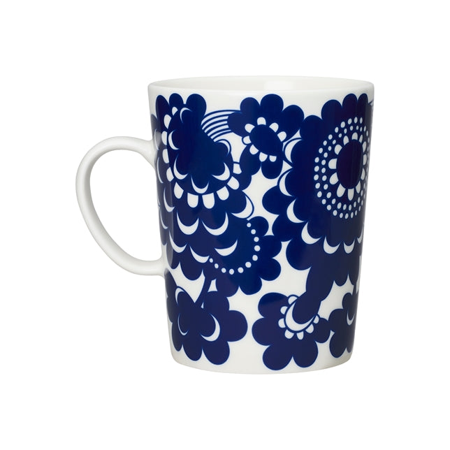 De varme og solrige dage i sommerhuset inspirerede mønsterdesigneren Esteri Tomula uendeligt, og hun skabte talrige elskede illustrationer fulde af varme og glæde. Et af disse fortryllende mønstre er Esther-mønsteret, som nu pryder servicet i Arabias Beloved Patterns-serie. Det blåblomstrede Esteri 0,5 liters krus er den perfekte ledsager til afslappende øjeblikke med en kop te eller til at nyde en latte. Dette krus bringer et strejf af naturlig skønhed og sommerlig atmosfære til hvert måltid og hver drink. Blomsterne og de mange detaljer i Esteri-mønsteret giver borddækningen et friskt look. 0,5L Esteri-kruset er den perfekte gaveidé til enhver te- og kaffeelsker.