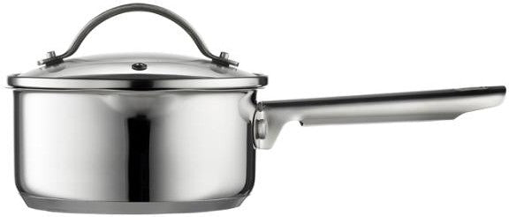 Glaslåg med si-funktion på to sider af låget, hvilket sikrer, at vand kan hældes fra gryden uden at indhold kommer med.