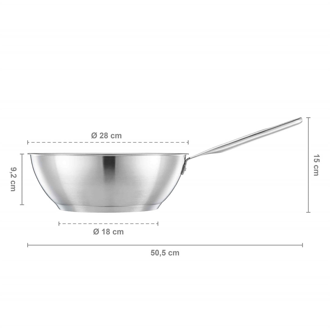 Med Fiskars All Steel wok 28 cm kan du uppleva glädjen i att laga mat på höggradigt, hållbart och återvunnet rostfritt stål – samtidigt som du bidrar till att minimera avfallet. Den är extremt hållbar och har tillverkats av 90 % återvunnet stål som har 92 % lägre koldioxidavtryck än branschgenomsnittet. Non-stick-beläggningen med Ceratec™ garanterar en vackert gyllenbrun yta och klarar höga temperaturer. Den tjocka 3-lagersbotten ger effektiv och jämn uppvärmning på alla hällar. En tidlös och stilren design gör att den passar in i moderna, hållbara kök där varje måltid kan bli ett tillfälle att stanna upp och njuta en stund. Tillverkad i Finland med hållbara processer och metoder.