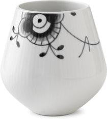 Denne enkle Sort Mega Riflet Vase på 12 cm er i særdeleshed egnet til små buketter og enkle arrangementer af afskårne blomster og grene. Det håndmalede mønster består af enkle, florale elementer i nuancer af sort og grå, som i sig selv er en smuk buket i ethvert af hjemmets rum. Sort Mega Riflet er et smukt bevis på, at selv de mest klassiske traditioner kan tåle at blive udfordret – med skønhed som resultat. Stellets karakteristiske mønster af sorte og grå håndmalede nuancer indkapsler en dramatisk, monokrom kontrast til de hvide porcelænsoverflader. I Royal Copenhagens blå univers er Sort Mega Riflet et strejf af sofistikeret coolness.